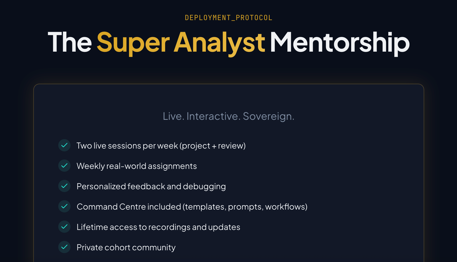We recently launched the Super Analyst Mentorship, a hands-on program for anyone who wants to learn how to build AI workflows like this one from scratch.