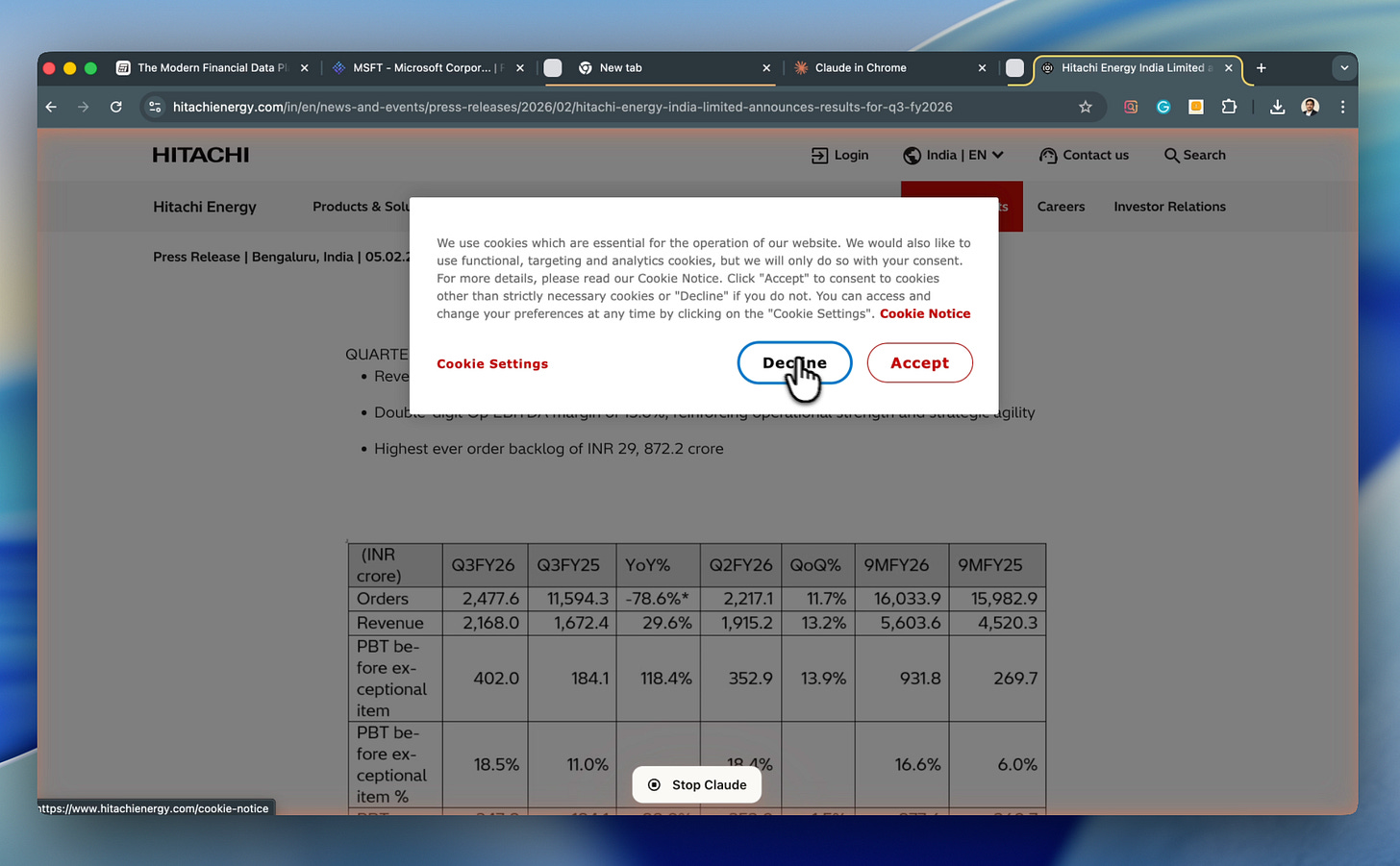 This is the part that feels different the first time. Claude starts pulling data from primary sources: company investor relations pages, BSE and NSE filing portals, Screener.in. It builds the financial model. It writes the investment thesis. It structures the report. You are not doing any of this. You are watching it happen. The instinct is to jump in and correct things mid-run. Resist that. Let it finish. You will have the full output in front of you to audit, challenge, and refine. But first, let it complete the job you gave it.