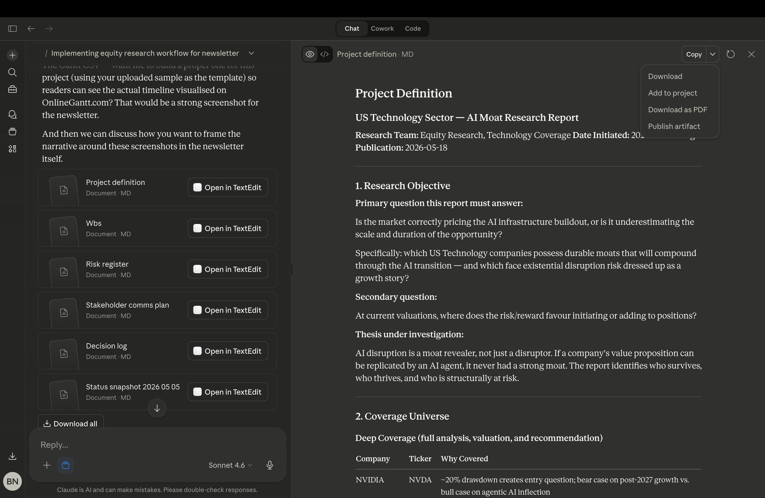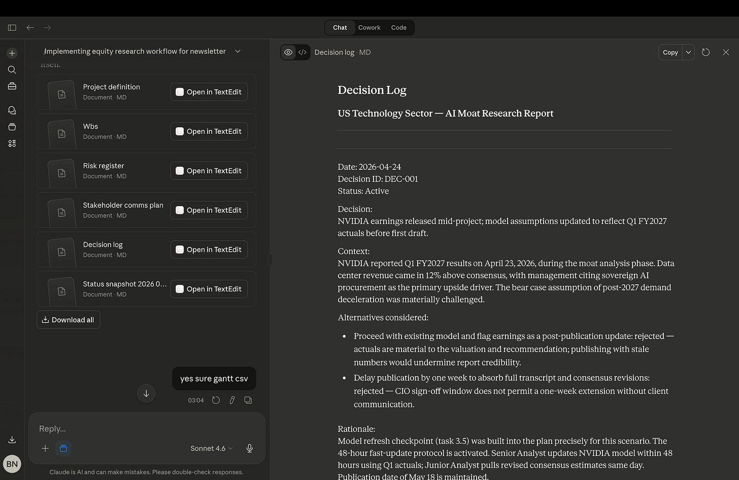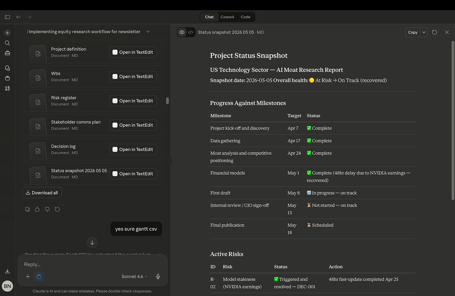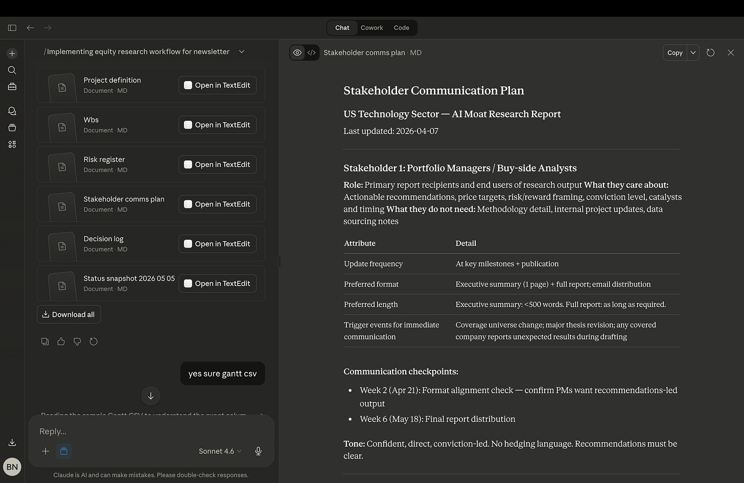 The equity research project management system investment firms pay consultants six figures to implement. Built on Claude Cowork. Free.