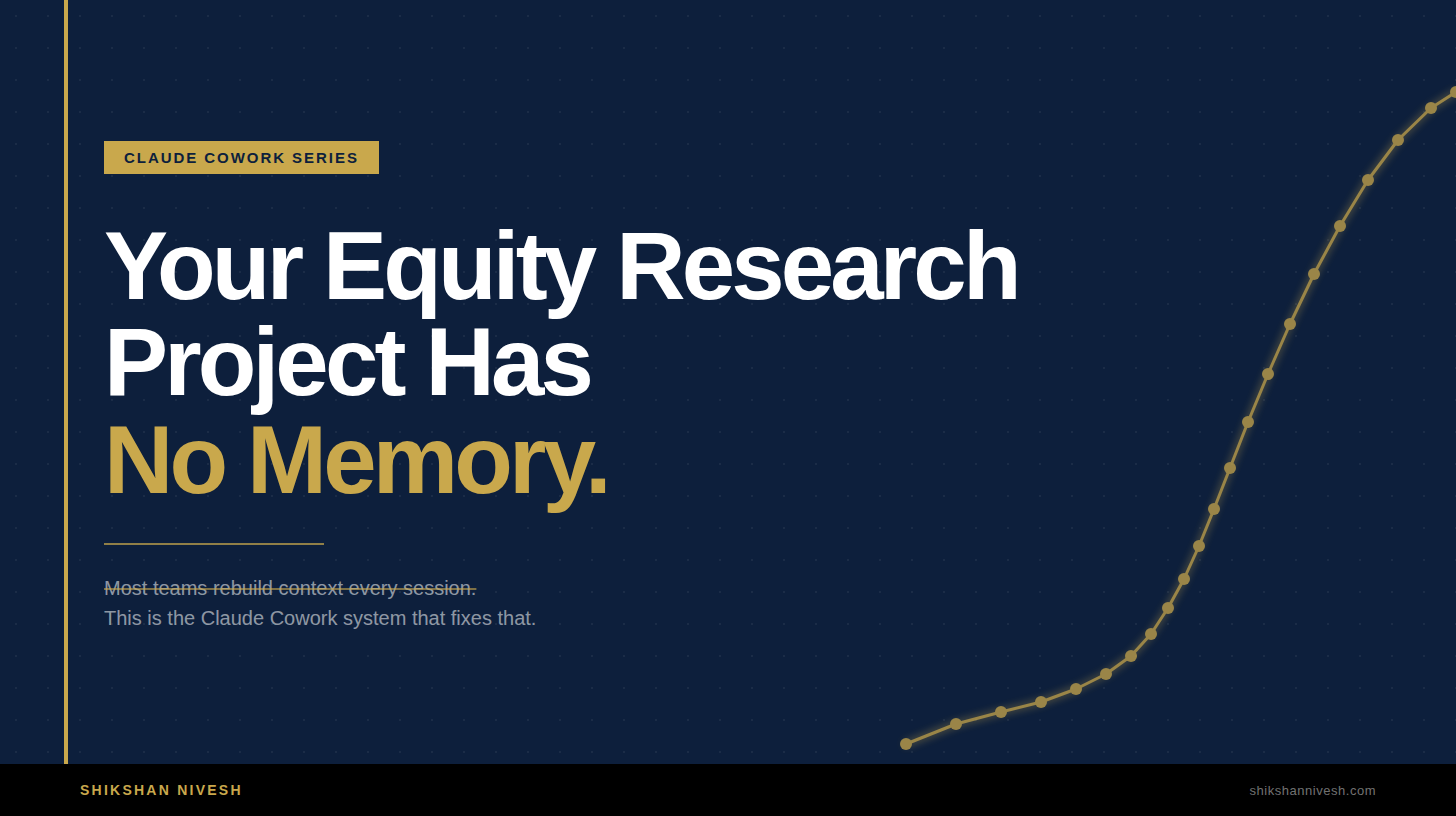 This is the problem Claude Cowork solves, but only if you set it up correctly. Out of the box, Claude has no memory of your project either. Every new session starts blank. You re-explain the coverage universe. You re-brief the thesis. You rebuild what you already built.