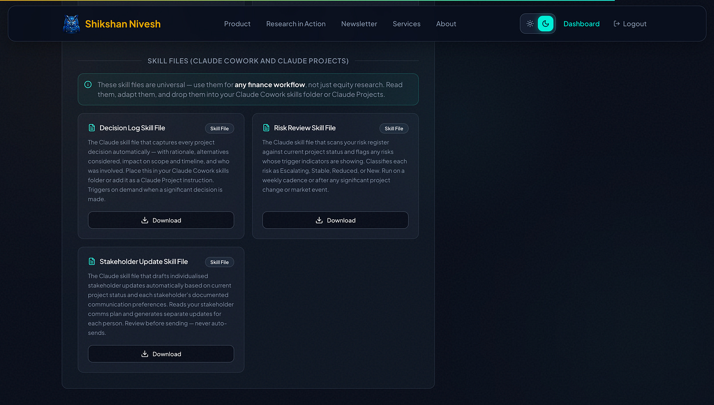 If you are starting with Claude Projects, create a new Project in Claude and name it after your research report. Upload your initial research notes, any earnings transcripts you already have, and the three skill files from the download bundle at the end of this newsletter.